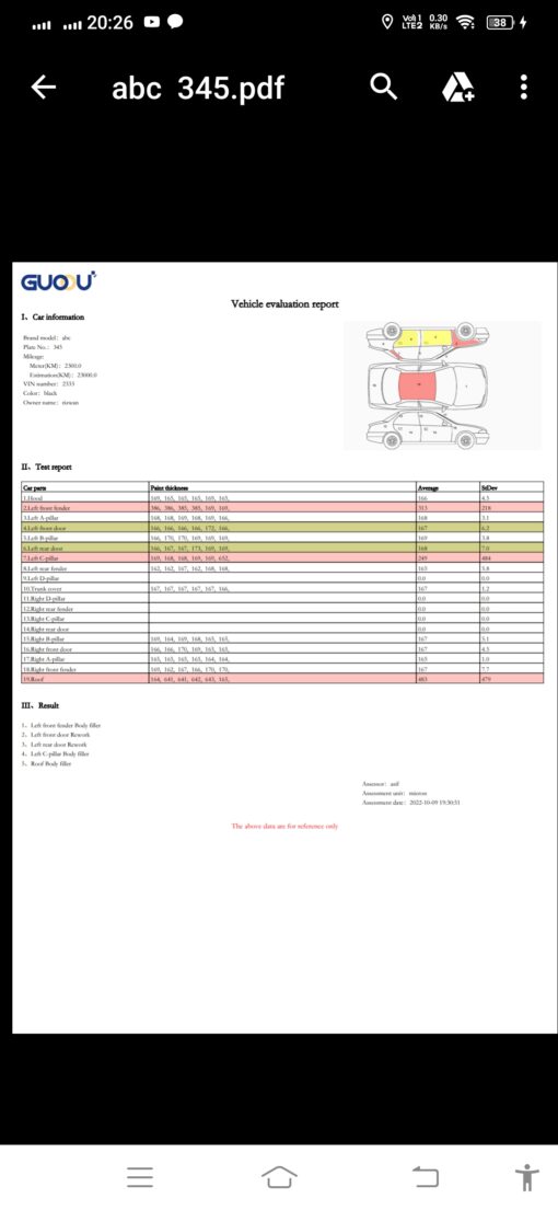 - This Car Paint Tester is easy to generate a report of the whole vehicle’s paint condition with three clear Pictures of Two sides and top of the vehicle marked